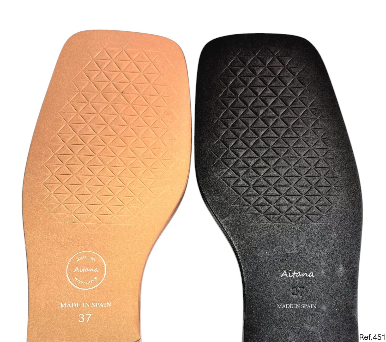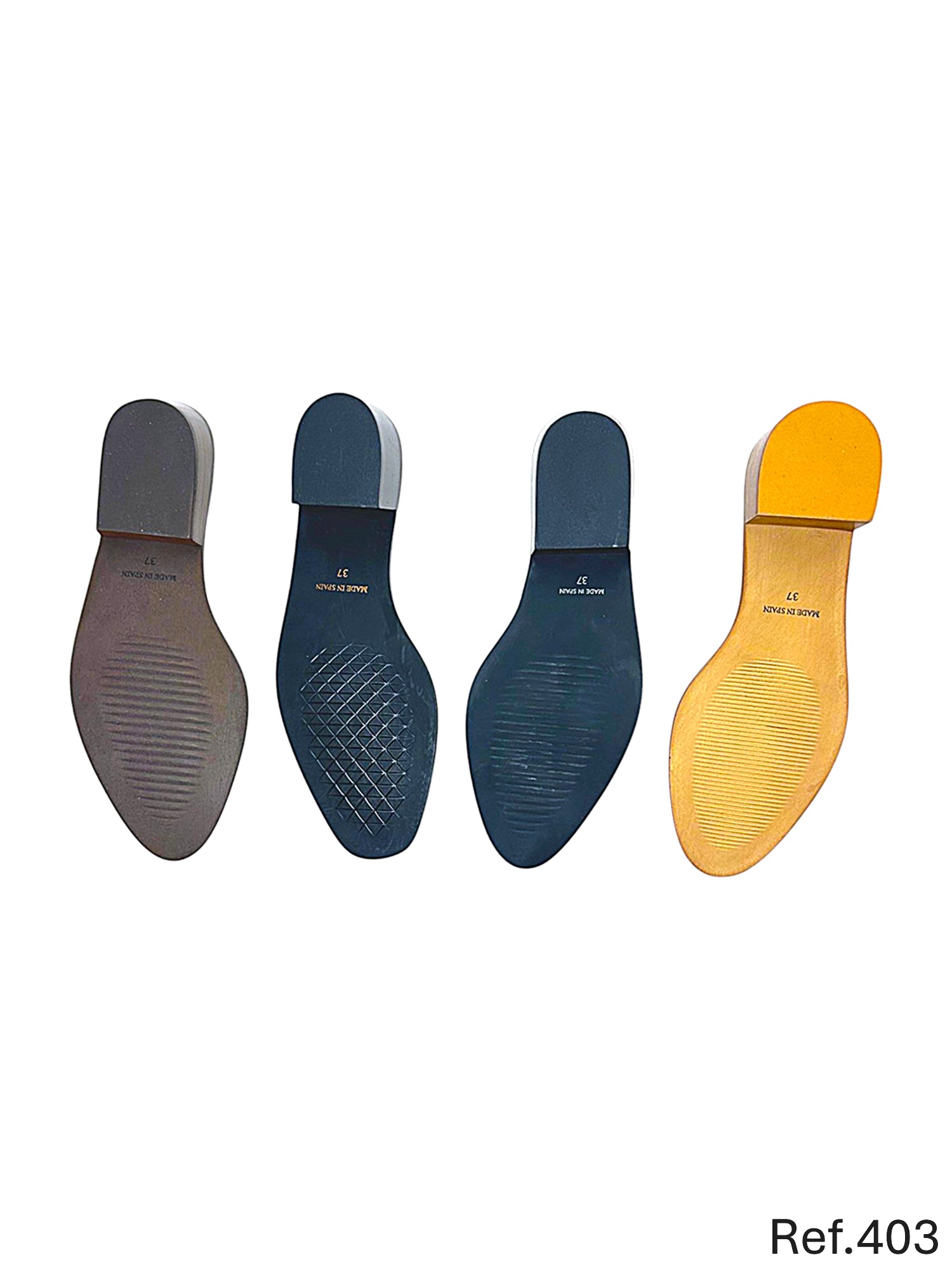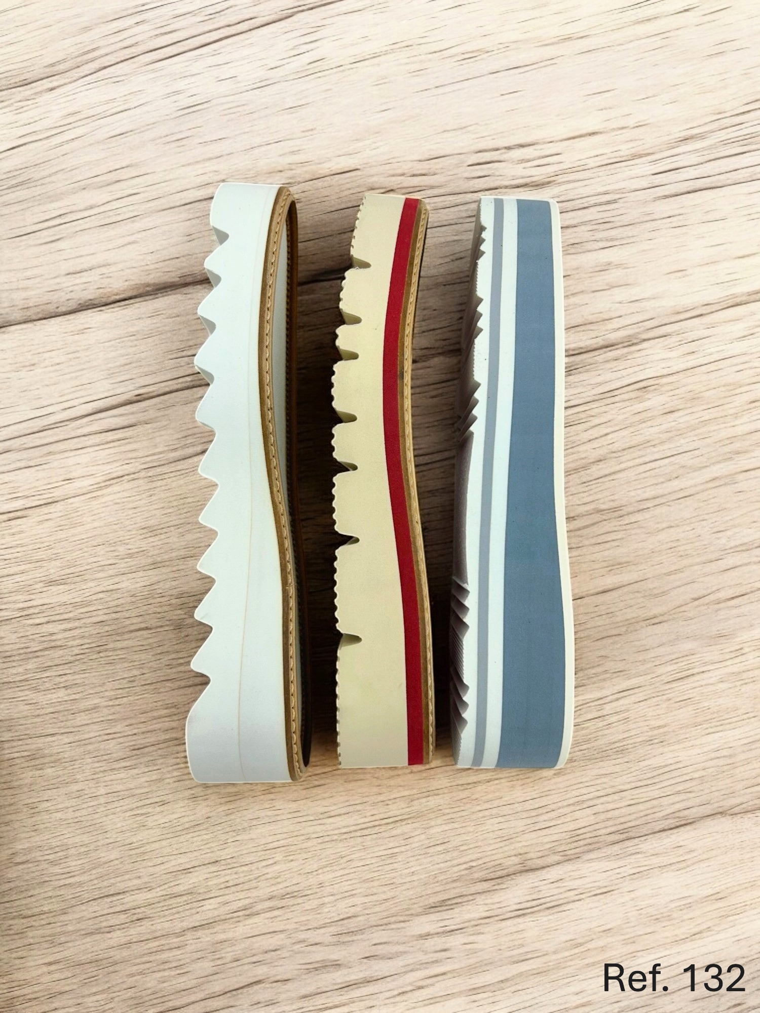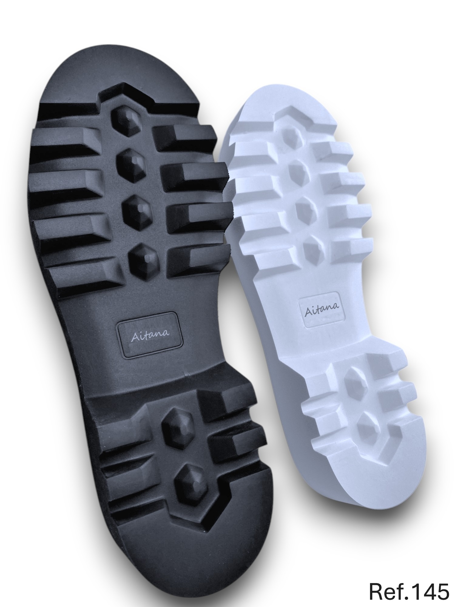 Sostenibles e innovadoras suelas de crepelina y TPU recicladas con diferentes productos como el PET, el caucho, polvo de cuero, algas marinas, cafe…